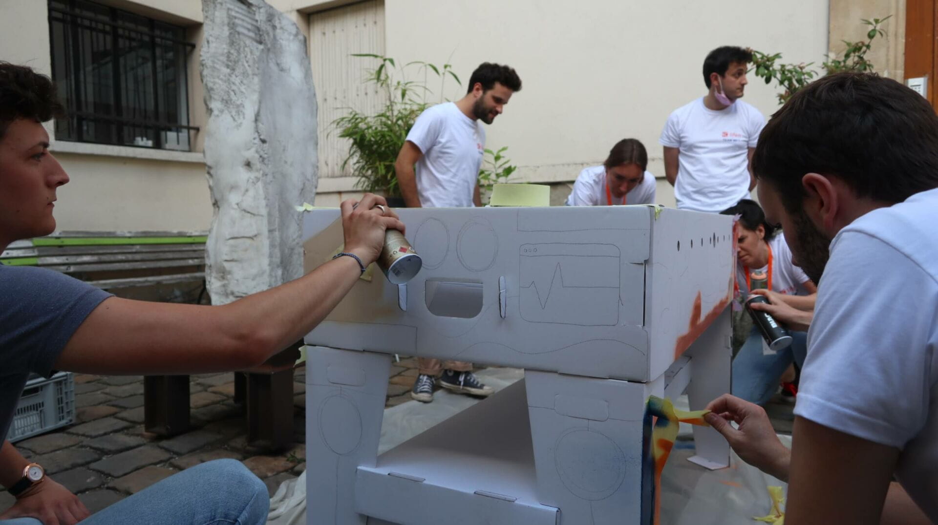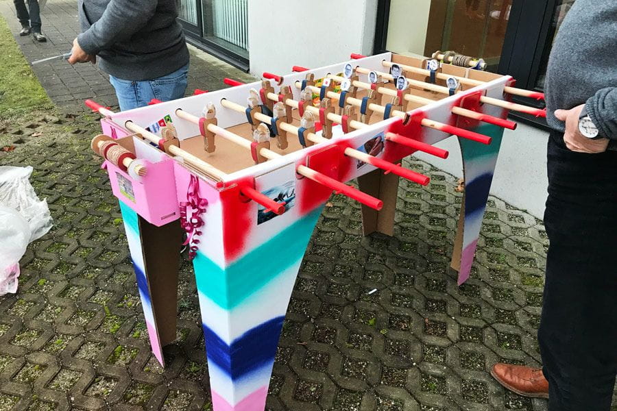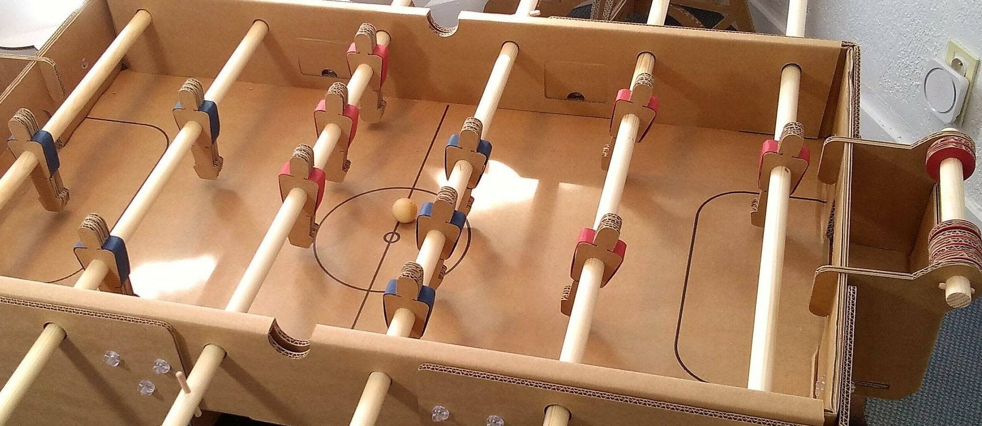 - Construction collaborative : Assemblage du baby-foot géant en carton, avec des défis intermédiaires pour gagner des pièces supplémentaires